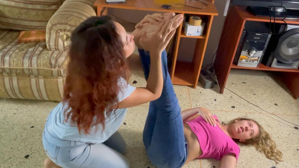 While Barbara is relaxing on the sofa, Natali sneaks behind her and